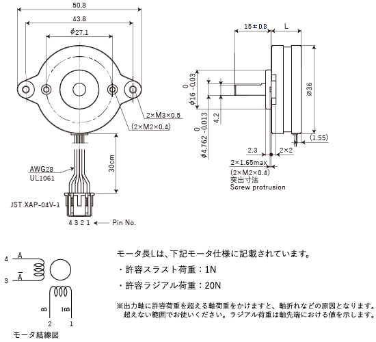 - DC24V入力、フルステップ駆動、当社標準ドライバ使用
