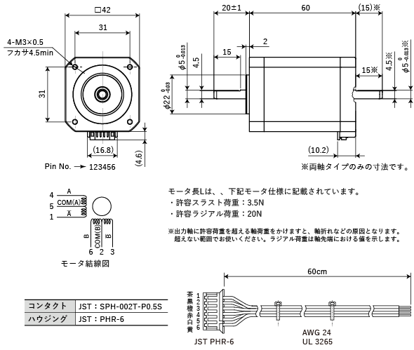 - DC24V入力、フルステップ駆動、当社標準ドライバ使用