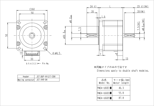 - DC24V入力、フルステップ駆動、当社標準ドライバ使用